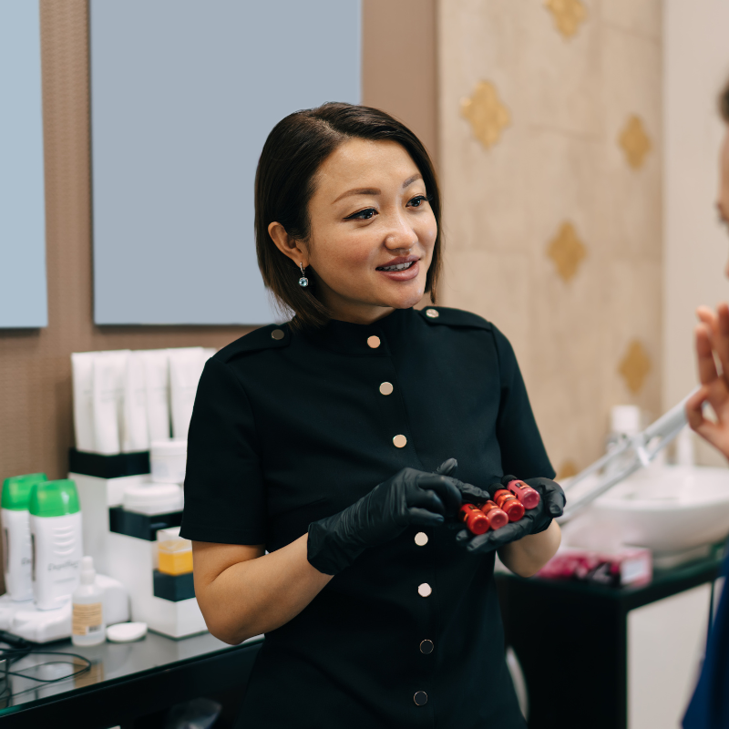 Unsere Expert-Mitarbeiterin bietet professionelle Beratung und hochwertige Behandlungen an.